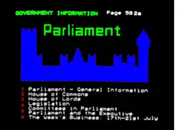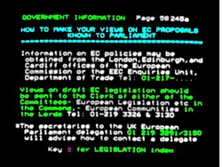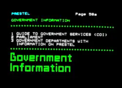 Page de "Viewdata Graphics utilisée en 1977 sur le prototype du service expérimenté par le centre de recherche des PTT du Royaume-Uni