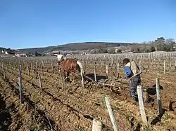 À la fin des années 1960-70 apparaît l'enjambeur, qui remplace le cheval. À la fin des années 1970, la Bourgogne comptait environ 34 000 hectares en AOC[27]. Les techniques en viticulture et œnologie ont bien évolué depuis 50 ans (vendange en vert, table de triage, cuve en inox, pressoir électrique puis pneumatique…).