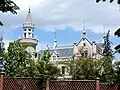 Le bâtiment, qui prèsente un style néogothique, a un plan de forme quadrangulaire, agrémenté de deux tours sur la façade ouest, l'une d'entre elles étant surmontée d'une flèche[2].