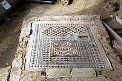 Au centre du bâtiment, se trouve la grande salle qui a suscité des désaccords quant à son utilisation comme espace de culte ou d'étude. À l'extrémité ouest de la ville et disposé sur les murs du frigidarium et de certaines de ses pièces se trouve l'œcus. Entre l'oecus et la pièce centrale sont disposées les cubiculum. Toutes ces pièces sont reliées entre elles, par un grand couloir couvert. Les sols de toutes les pièces de la villa sont décorés de mosaïques polychromes à motifs géométriques.