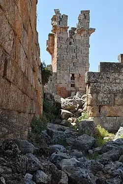 - ↑ Friedrich Wilhelm Deichmann: Qalb Lōze und Qal’at Sem’ān. Die besondere Entwicklung der nordsyrisch-spätantiken Architektur. Bayerische Akademie der Wissenschaften. Sitzungsberichte, Jahrgang 1982, Heft 6, C. H. Beck, München 1982, p. 23-25
