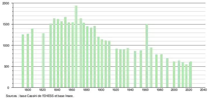 - ↑ Fiches Insee - Populations de référence de la commune pour les années 2006, 2007, 2008, 2009, 2010, 2011, 2012, 2013, 2014, 2015, 2016, 2017, 2018, 2019, 2020, 2021 et 2022.