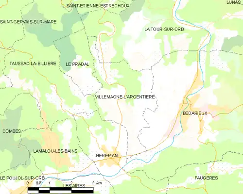 - ↑ « Orthodromie entre Villemagne-l'Argentière et Bédarieux », sur fr.distance.to (consulté le ).