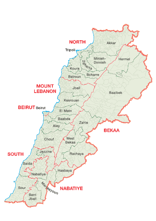 | 16. | Jezzine | جزين(Jezzine) | k.A. | 13 476 | Sud-Liban |