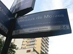 Vinícius de Moraes (IPA: [viˈnisjuʃ dʒi moˈɾajʃ], né le à Rio de Janeiro et mort le dans la même ville, Marcus Vinícius da Cruz de Mello Moraes de son nom complet, mais souvent appelé Vinícius, ou poetinha (« petit poète »), est un personnage clef de la musique brésilienne contemporaine. Comme poète, il a écrit les paroles de nombre de chansons devenues des classiques. Mais on lui doit aussi quelques mélodies et il se fit l'interprète de ses chansons. C'était en outre une personnalité très dynamique qui a encouragé de nombreux artistes à s'engager dans la chanson populaire de qualité.