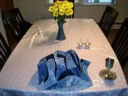 Le vin joue un grand rôle dans la halakha, les lois et les traditions juives. Le Kiddouch est une bénédiction récitée sur le vin à sanctifier pour le Shabbat ou au cours d'une fête juive comme la Pâque. Durant le séder, c'est une obligation pour les hommes et les femmes de boire quatre coupes de vin[16]. Dans le Tabernacle et dans le Temple de Jérusalem, la libation de vin participait à la fonction sacrificielle[17]. Les vins qui sont alors utilisés, sont cités dans l'Ancien Testament. Il s'agit de ceux du Liban (Livre d'Osée) et des vins de Chelbom et de Dam, qui sont vendus aux foires de Tyr[14].
