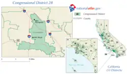 À partir du redécoupage de 2020, le 28e district congressionnel de Californie est situé en Californie du Sud. Il englobe la majeure partie du nord-est du Comté de Los Angeles et une partie de la frontière orientale de San Bernardino. La majorité du district est occupée par la Forêt nationale d'Angeles.