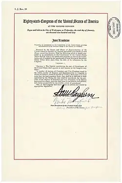 - ↑ (en) United States Government Printing Office, « PRESIDENTIAL ELECTORS FOR D. C. TWENTY-THIRD AMENDMENT » [PDF], sur gpo.gov