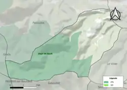 L'occupation des sols de la commune, telle qu'elle ressort de la base de données européenne d’occupation biophysique des sols Corine Land Cover (CLC), est marquée par l'importance des forêts et milieux semi-naturels (92,4 % en 2018), une proportion identique à celle de 1990 (92,4 %). La répartition détaillée en 2018 est la suivante : forêts (92,4 %), prairies (6,7 %), zones agricoles hétérogènes (0,9 %)[19]. L'évolution de l’occupation des sols de la commune et de ses infrastructures peut être observée sur les différentes représentations cartographiques du territoire : la carte de Cassini (XVIIIe siècle), la carte d'état-major (1820-1866) et les cartes ou photos aériennes de l'IGN pour la période actuelle (1950 à aujourd'hui)[Carte 1].