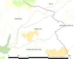 - ↑ « Orthodromie entre Viricelles et Chazelles-sur-Lyon », sur fr.distance.to (consulté le ).