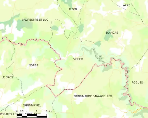 - ↑ « Orthodromie entre Vissec et Alzon », sur fr.distance.to (consulté le ).