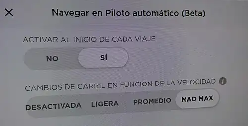 Un assistant bétâ de conduite permettant le changement automatique de voie pour doubler des véhicules dont l'allure est inférieure à la vitesse ciblée; le constructeur de ce véhicule a nommé "Mad Max" le mode le plus brusque d'après la franchise media[4].