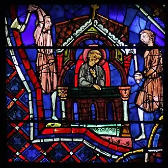 - 1 2 3 4 « Vie de saint Rémi »(Archive.org • Wikiwix • Archive.is • Google • Que faire ?), vitrail 12, « La cathédrale de Chartres »(Archive.org • Wikiwix • Archive.is • Google • Que faire ?).