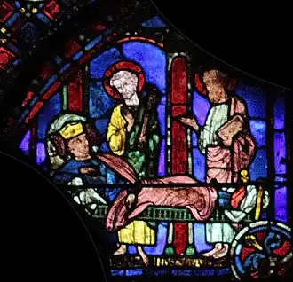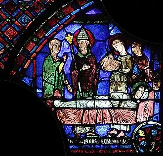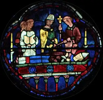 Le vitrail est situé dans le déambulatoire sud de la cathédrale Notre-Dame de Chartres. Il est numéroté 008 dans le Corpus vitrearum. Le renfoncement qu'il occupe était primitivement dédié à une petite chapelle ornée de deux lancettes, symétrique de celle située dans le déambulatoire nord, avec le vitrail de Charlemagne. La lancette de gauche a été condamnée entre 1350 et 1358, pour ouvrir l'accès à la chapelle Saint Piat, et le vitrail historié qui l'ornait primitivement a été remplacé par la grisaille actuelle (numéroté 006).