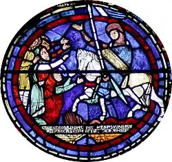 Le vitrail de 7,47 × 2,07 m s'inscrit dans la lancette de gauche, la lancette de droite étant occupée par le vitrail de la Vie de la Vierge[1]. La verrière a été exécutée entre 1217 et 1220, elle est contemporaine de la cathédrale actuelle reconstruite après l'incendie de 1194.