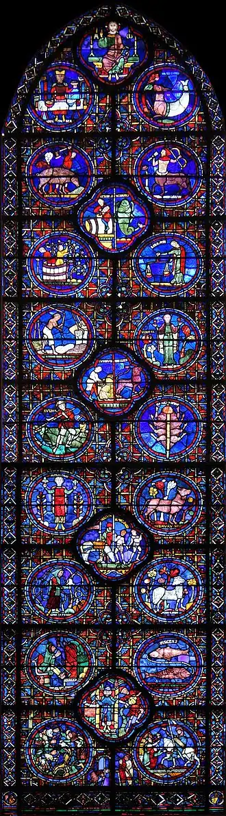 Vitrail du zodiaque, cathédrale de Chartres (baie 28a)