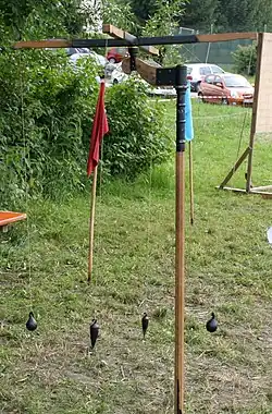 - la dioptre, instrument composé d'un triangle muni d'un fil à plomb. Il sert pour le nivellement de la route.