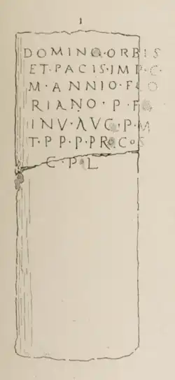 Elle est un des rares milliaires à porter une dédicace de l'an 276 à l’empereur Florien, qui essaya de s'imposer par la force mais dont le règne ne dura que quelques mois. Émile Espérandieu trouve d'ailleurs, à son sujet, « choquant » « l'emphatique qualification de maître de l'univers et de la paix » (Domino orbis et pacis).