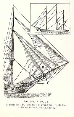 - Clinfoc (ou Clin foc, voile la plus à l'avant)[3],[1]