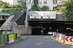 - Rue des Halles, accessible depuis la trémie d'entrée Rue des Halles ;