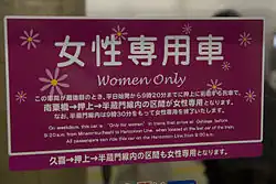 En 1947, des voitures réservées aux femmes et aux enfants sont instaurées sur la ligne Chūō et sur la ligne Keihin-Tōhoku. À cette époque, la saturation de ces lignes aux heures de pointe était si grave que, souvent, les femmes et les enfants étaient physiquement incapables d'embarquer. Ces voitures réservées sont restées en activité sur les trains du matin de la ligne Chūō jusqu'en 1973[20].