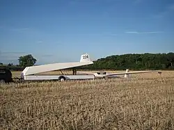 Planeur « vaché » dans un champ.