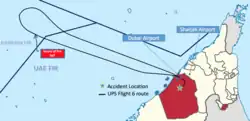 Le , un Boeing 747-400 cargo assurant le vol UPS Airlines 6 reliant Dubaï aux Émirats arabes unis et Cologne en Allemagne a subi un incendie en vol qui a provoqué l'écrasement de l'avion, tuant les deux membres d'équipage, les seules personnes à bord[1],[2],[3]. Il s'agissait du premier accident mortel pour UPS Airlines[4].