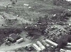 Vue aérienne du site du crash du vol 191, qui a endommagé de nombreuses maisons mobiles situées à proximité de l'aéroport.