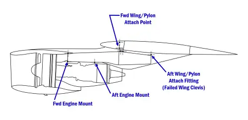 Un diagramme de la FAA montrant l'ensemble du moteur-pylône du DC-10, indiquant la ferrure de fixation arrière défaillante de pylône.