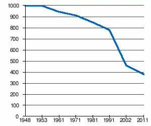 | 996 | 997 | 946 | 911 | 853 | 779 | 462[2] | 379[1] |