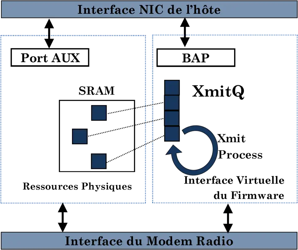 Bien qu'il soit possible de désosser le micrologiciel, de supprimer certaines limitations, ces types d’attaques nécessitent de considérables efforts à mettre en œuvre. Plusieurs mécanismes alternatifs pour contourner les limitations imposées par l'interface du micrologiciel sont connus. Pour comprendre notre approche, il est d'abord nécessaire de comprendre son architecture. L’exemple ci-dessous nous présente un micrologiciel 802.11[6].