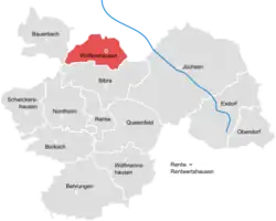 - (de) Cet article est partiellement ou en totalité issu de l’article de Wikipédia en allemand intitulé « Wölfershausen » (voir la liste des auteurs).