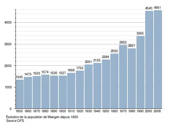 Le graphique suivant résume l'évolution de la population de Wangen entre 1850 et 2008[4] :
