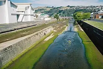 Lorsqu'elle atteint la zone urbaine de Dunedin, la rivière n’est plus qu’un modeste ruisseau, à cause de la quantité de l’eau prélevée en amont.