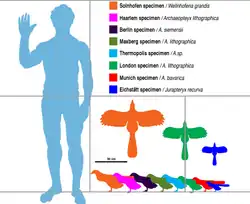 Wellnhoferia (nommé en l'honneur du docteur Peter Wellnhofer, conservateur en chef émérite) est un genre incertain d'oiseaux de la famille des Archaeopterygideae, en effet, il est possible qu'il appartient au genre Archaeopteryx. Ce dinosaure, d’une envergure de 50 cm, a vécu à la fin du Jurassique au Tithonien, il y a 156 à 150 Ma dans un environnement alors insulaire, qui se situe actuellement en Allemagne.