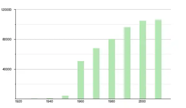 | 1960 | 50 645 | ▲ +1 025,69 % | |