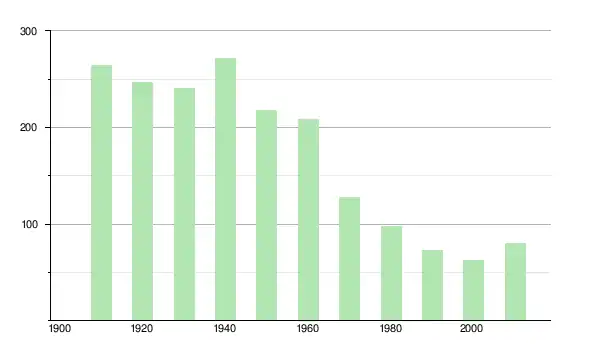 | 1950 | 218 | ▼ −19,85 % | |