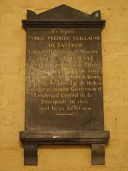 Zastrow était également gouverneur de Barten, seigneur de Baudach près de Crossen-sur-l'Oder, Lagow dans l'arrondissement de Sternberg-Est, Deutsch Presse dans l'arrondissement de Schmiegel et Wielichowo dans l'arrondissement de Kosten. Il meurt au château du Bied près de Colombier sur le lac de Neuchâtel et est inhumé dans la Collégiale de Neuchâtel.