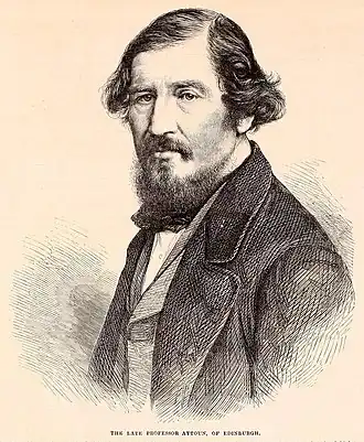 William Edmondstoune Aytoun ( - ) est un poète écossais, avocat de formation et professeur de rhétorique et de belles lettres à l'université d'Édimbourg. Il publie de la poésie, de la traduction, de la fiction en prose, de la critique et de la satire et collabore toute sa vie au périodique littéraire d'Édimbourg Blackwood's Magazine. Il est aussi un collectionneur de ballades écossaises.