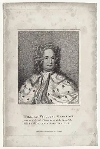 - 1 2 « GRIMSTON, William (c.1683-1756), of Gorhambury, nr. St. Albans, Herts. », History of Parliament Online (1715-1754) (consulté le )