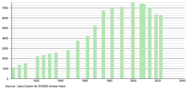 - ↑ Fiches Insee - Populations de référence de la commune pour les années 2006, 2007, 2008, 2009, 2010, 2011, 2012, 2013, 2014, 2015, 2016, 2017, 2018, 2019, 2020, 2021 et 2022.