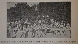 - ↑ (en) L.S. Lawrence et Alma White (dir.), « Patriotic Day at Zarephath Camp-Meeting », Pillar of Fire Church, , p. 10 (lire en ligne) :