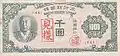 1000 wons | 171 × 78 mm | Vert | Valeur | Imprimerie nationale japonaise | |||