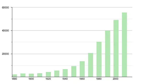 | 1950 | 9 386 | ▲ +41,42 % | |