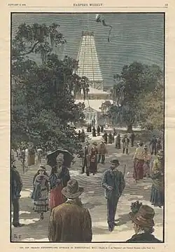 Le site avait ceci de remarquable qu'il pouvait être accessible directement par chemin de fer (une gare fut construite), bateau à vapeur ou navire océanique (des embarcadères fluviaux et maritimes furent prévus). Le bâtiment principal couvrait 13 hectares et était la plus grande structure couverte à cette époque, illuminé par 5 000 lumières électriques, système relativement nouveau, quand la ville, elle, n'en comptait que quelques centaines. Le site comprenait également une vaste salle horticole (Horticultural Hall), une tour d'observation desservie par un ascenseur alimenté par l'électricité, sans compter les pavillons représentant tous les pays et les industriels invités. Le parc était sillonné d'une ligne de tramway également alimentée par l'électricité. Le pavillon mexicain était le plus somptueux, il fut aussi le plus populaire : il coûta plus de 200 000 dollars et mettait en vedette une énorme fanfare qui attira les foules[2],[3],[4]. Le pavillon français était représenté par son délégué, Henri Farjas, qui était parvenu à mobiliser quelques industriels, et eut un certain succès auprès de la communauté francophone locale[5].