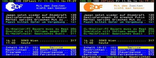 - SWR Fernsehen (télétexte de niveau 2.5 complètement rétro-compatible, avec des texte et graphiques de plus haute qualité sur quasiment chaque page).