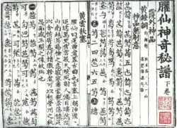 - 1425 : publication en Chine du Shenqi Mipu, ouvrage de partitions musicales.