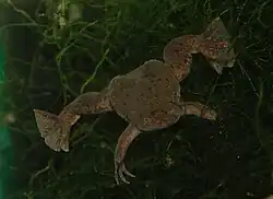 - ↑ Kobel, Du Pasquier, Fischberg & Gloor, 1980 : Xenopus amieti sp. nov. (Anura: Pipidae) from the Cameroons, another case of tetraploidy. Revue Suisse de Zoologie, vol. 87, no 4, p. 919-926 (texte intégral).