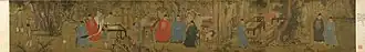 Bien que les œuvres de Xie Huan, peintre professionnel de personnages, soient moins bien connues, sa Réunion littéraire dans le parc aux abricotiers (conservée au Musée de la ville de Zhenjiang) est remarquable. La peinture représente trois importants fonctionnaires de la cour (Yang Rong, Yang Shiqi et Yang Pu, connus comme les trois Yang) dans un jardin d'abricotiers, où ils écrivent de la poésie et boivent du vin. C'est un portrait de groupe à caractère commémoratif. L'artiste dépeint la beauté du parc dans un style influencé par la tradition des Song du Sud. Il se représente lui-même dans le tableau, sous la forme d'un personnage placé à une certaine distance du centre. Cette pratique est rare chez les artistes de cour[2]. Comme beaucoup d'autres peintres de la cour, Xie Huan est mêlé aux intrigues qui s'y déroulent dont celle se rapportant aux fausses accusations portées contre le peintre Dai Jin[3].