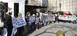 Début 2011 survient la « révolte yéménite de 2011 » désignant un mouvement de contestation de grande ampleur se déroulant au début de l'année 2011 à Sana'a et dans plusieurs autres villes du Yémen[37]. S'inspirant des précédents tunisien et égyptien, les manifestants réclament la démocratie, la fin de la corruption et de la mainmise du congrès général du peuple (CGP, au pouvoir), de meilleures conditions de vie et le départ du président Ali Abdallah Saleh, au pouvoir depuis 22 ans. Les protestations ont par la suite dégénéré en révolte à la suite de l'insurrection de combattants tribaux.
